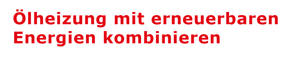 Für neue Ölheizungen gilt dann ab 2026: Die Ölheizung darf nur noch in Anlagen in Kombination mit erneuerbaren Energien, wie z.B. Solartherme, Photovoltaik oder Wärmepumpe, installiert werden.