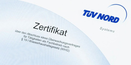 Der TÜV NORD bescheinigt uns, dass wir einen Überwachungsvertrag für die Tätigkeiten als Fachbetrieb im Sinne des §19 WHG abgeschlossen haben. Dabei werden u.a. Einbauen, Aufstellen und Reinigen von Heizölverbraucheranlagen überwacht.