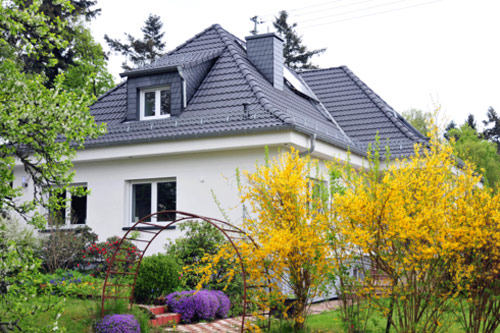 Oberste Priorität hatte die Erneuerung der Heizungsanlage. Der Öl-Niedertemperaturkessel, der die rund 160 Quadratmeter Wohnfläche bisher beheizt hatte, war mehr als 20 Jahre alt und entsprach nicht mehr dem Stand der Technik. Er wurde gegen ein effizientes Öl-Brennwertgerät ausgetauscht. Die Warmwasserbereitung übernimmt nun eine Solarthermieanlage auf dem Dach. Damit konnte der Tank deutlich kleiner ausfallen als bisher: Der alte 5.000-Liter-Erdtank wurde fachgerecht zum Regenwasserspeicher umgerüstet und sichert jetzt die Gartenbewässerung. Der Heizölvorrat lagert im neuen 3.000-Liter-Tank im Keller und reicht für mehr als zwei Jahre.