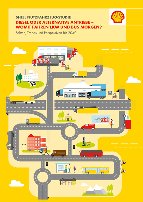 Das ist das Ergebnis der Shell Nutzfahrzeug-Studie, die Shell in Zusammenarbeit mit dem Institut für Verkehrsforschung im Deutschen Zentrum für Luft- und Raumfahrt (DLR) unter dem Titel „Diesel und alternative Antriebe – womit fahren Lkw und Bus morgen? Fakten, Trends und Perspektiven bis 2040“ erarbeitet und in Berlin vorgestellt hat. Dabei wurden erstmals auch Kraftomnibusse berücksichtigt.