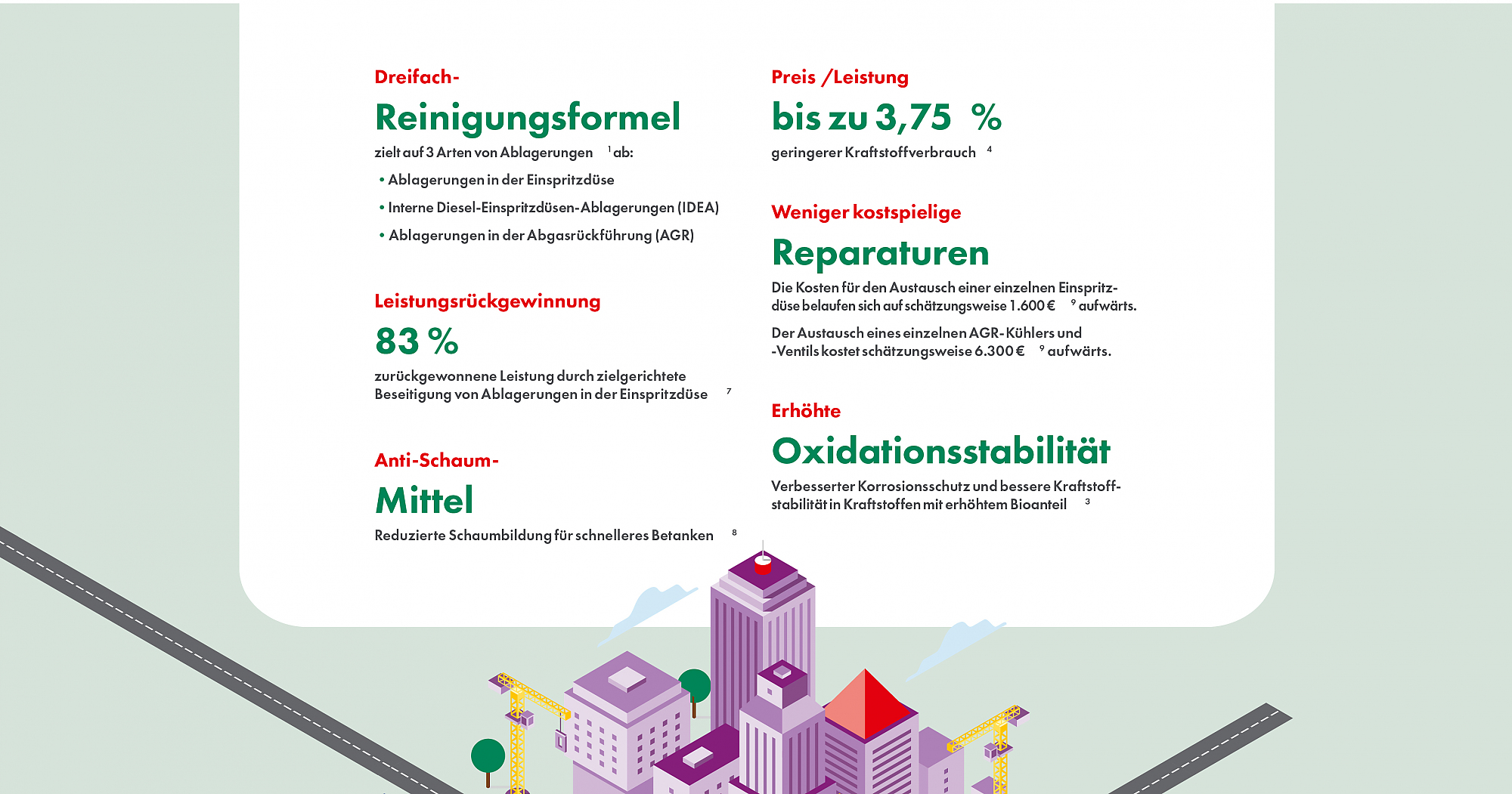 Wir verstehen die Herausforderungen des Geschäftslebens in allen Branchen, von knappen Fristen bis zu sich ändernden Anforderungen. Unsere fortschrittliche Kraftstofftechnologie, speziell für moderne Dieselmotoren, zielt darauf ab, betriebliche Abläufe zu verbessern und Vermögenswerte zu schützen.